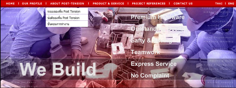 HOME l OUR PROFILE l ABOUT POST-TENSION l PRODUCTS & SERVICE l PROJECT REFERENCES l CONTACT US